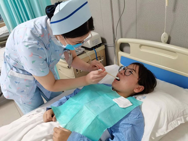 “患者乙”王海莉对测血糖还比较满意,因为完全没有感觉到疼痛。前鼻腔填塞对她来说非常痛苦,鼻子不能出气,只能用嘴呼吸,连话都不能正常说了。氧气吸入还挺安逸,可惜这份安逸还是被吸氧管那难闻的塑料味给破坏了。