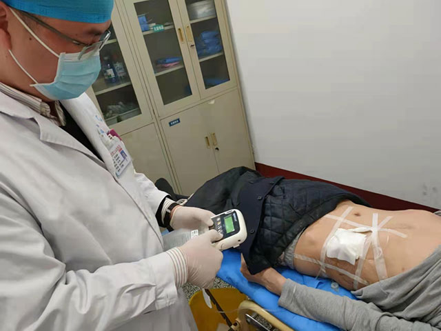 经过一番周密的安排,顺利了放置了鞘内给药装置,连接了微量镇痛电子药泵,仅用0.1ml/h的剂量就控制了患者剧烈的疼痛。不但镇痛效果良好,而且由于减少了药量有效避免了药物的不良反应。随即患者便不疼了,可以自如下地活动了,吃饭也有了胃口,脸上露出了久违的笑容,患者和家属都非常满意!