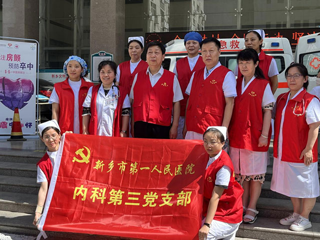 2022年6月6日中国第十个房颤日,为了提高房颤检出率及公众对房颤疾病的认知程度,当天我院房颤中心联合内科第三党支部(心血管内科,神经内科,内分泌科)在内科楼前举行房颤筛查及义诊活动,活动当天翟成凯院长及郭志勇院长亲临现场,表示了对活动的支持,活动共持续3小时余,参加的专家王桂芳主任医师,赵桂叶主任医师,邱伟主任医师,李立新主任医师,牛玉玉副主任医师等,他们认真细致解答患者的问题,潘静护士长,王莹护士长,梁霞飞,闫宁宁,娄超颖护师给病人测血压,测血糖,使用便携式心电筛查仪共筛查数十名群众,也有我们房颤中心治愈的房颤患者来到现场交流。期间发放房颤教育手册上百份,发放分药器及水杯小礼物,得到群众的好评。