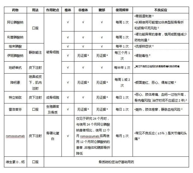 骨质疏松患者应联合使用钙剂和维生素D作为基础疗法+抗骨质疏松药物进行治疗。