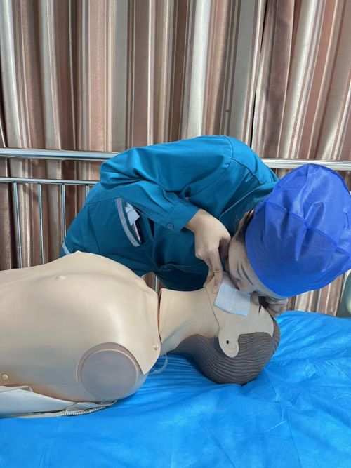 用手捏住患者鼻子,对患者的嘴巴吹气,持续大约 1 秒;见到患者胸腹部起伏后即可停止;进行 2 次人工呼吸,返回第 1 步,继续进行胸外按压。