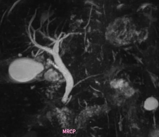 MR胰胆管造影(MR cholangio-pancreatography,MRCP)用于观察胰胆管系统解剖和病理形态的技术(图1MRCP)(图2MRCP),它可以展示胰胆管形态和组织结构为自然状态的表现,用于恶性肿瘤、结石、胆管先天性病变、狭窄和急慢性胰腺炎等诊断。