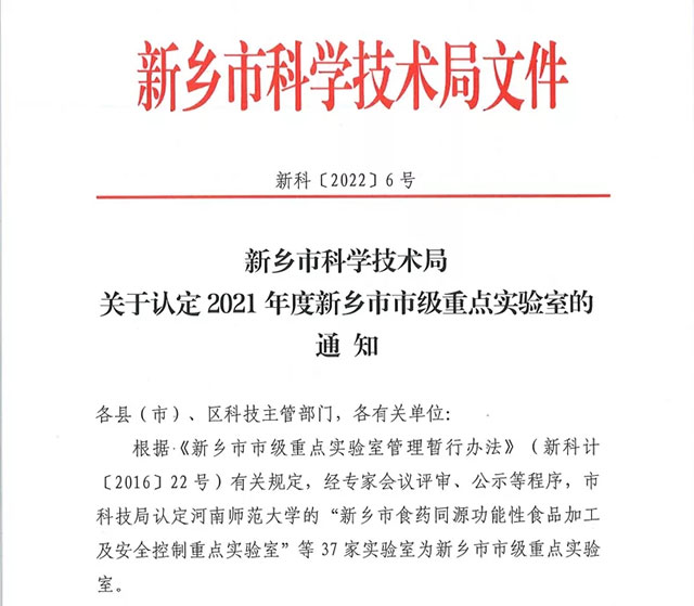 1月27日,新乡市科技局发布了【关于认定2021年度新乡市市级重点实验室的通知】,我院肿瘤科申报的“新乡市小细胞肺癌精准医学重点实验室”成功获批。