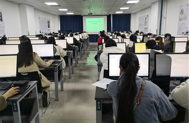 2022年3月4日上午,在2号楼3楼培训中心305室,91名报名成功的骨干护士采用护士在线规范化培训系统进行了理论考试。本次考试以《基础护理学》第六版、《临床护理实践指南》、《护士岗位技能训练50项考评指导》为蓝本,采用电脑随机出题的方式,对护理人员进行了基础护理和专业护理理论进行了考核。参加考试的护理人员沉着应战,在30分钟的答题时间内交上自己满意的答卷。最终,有73名护理人员凭借扎实的理论功底成功闯过了第一关。