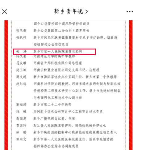 我院援沪医疗队员、医学检验科张婷 荣获首届新乡市五四青年奖章