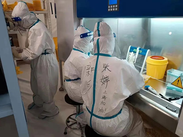 她坚决听从领导工作安排,做好个人防护,严把检验质量,为生物安全工作做出自己的努力。在上海疫情工作中,面对日均上万的核酸样本,每一个实验步骤都需要检验人员严格而精准的操作。她每天的精神都高度集中,把每一次开盖和处理样本都当成是与新冠病毒的一次近距离较量,在轰隆隆的生物安全柜内打开样本盖子时,需要动作轻缓,一不小心就可能形成气胶,污染生物安全柜,也可能让其他样本交叉污染。核酸提取过程中,每一步她都将心中早已烂熟的操作流程轻轻背诵,一步一步谨慎操作,每一种提取试剂的位置,试剂配件的安装是否到位,她都做到一丝不苟,准确无误地做好检测。实验室处在负压环境之下,在这种状态下,普通人不到半小时就会感觉到胸闷,而她常常要在里面工作至少工作8个小时以上。时常她也会感觉头晕,腿软,站不稳,呼吸困难,说话费力。但因为直面病毒,即便再不适她也一一克服,坚决把该完成的工作认真完成,把精准的检验结果汇报给上海人民。身为检验工作者,能为上海人民的疫情反击战出一份力,她感到无比的骄傲和自豪。