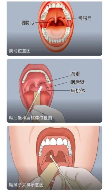 “请张开嘴巴,屏住呼吸,舌头压低……重点是对左侧扁桃体轻刷三下,右边扁桃体轻刷三下,同时对咽喉壁也轻刷三到五下……”