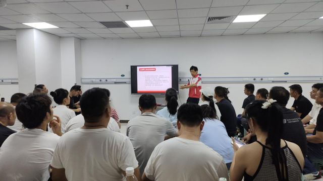 授课老师为学员讲授了红十字运动、救护概论,重点讲解常见急危重症的现场处理、心肺复苏、AED应用、及海姆立克急救法,并进行了现场演示。