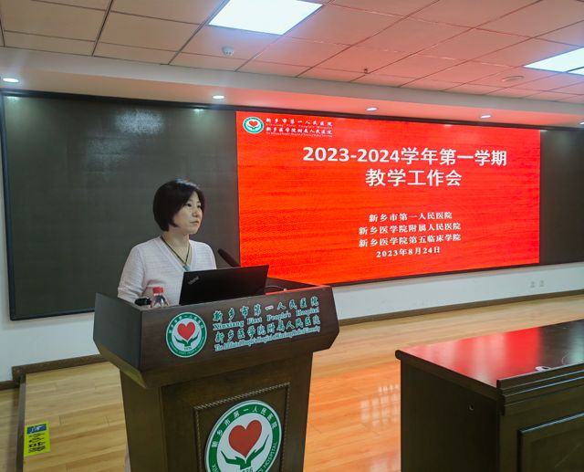 立足新起点,砥砺新征程。为确保新学年新学期教育教学工作平稳有序,8月25日下午4时在外科楼二楼会议室召开“新乡市第一人民医院、新乡医学院附属人民医院2023-2024学年第一学期教学工作会”。主管院长魏秀丽、赵晓生,各教研室主任、教学秘书,临床科室主任、教学秘书以及教师代表参加了本次会议,会议由教学管理科科长刘丽娇主持。