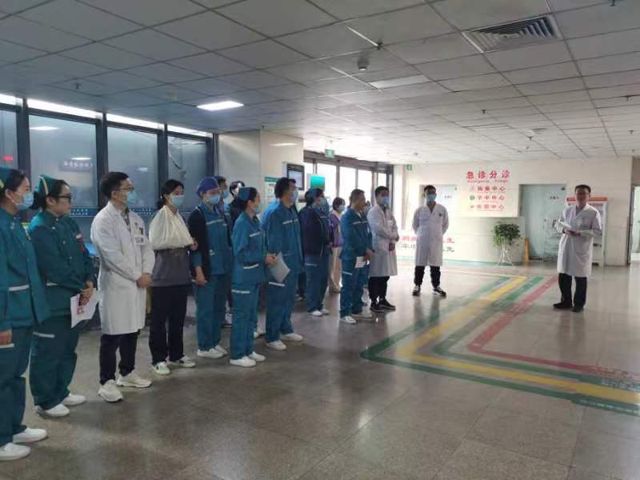 为锻炼我院应急队伍救治能力,完善群发伤应急预案及工作流程,加强医院“创伤救治中心”建设,进一步优化完善创伤救治流程,提升急诊急救和处理突发性公共卫生事件的能力,在紧急情况下能够做到调度有方、出诊及时、救治有力、措施得当。11月22日上午,我院创伤中心组织开展了“群体多发伤急救应急演练”,医务处、临床服务中心、保卫科、总务科、医学装备部、急诊医学科、急诊外科、骨科、普外科、神经外科、心胸外科、手术室麻醉科、医学检验科、CT室、放射科、输血科、超声医学科等职能部门和相关业务配合科室参与演练。