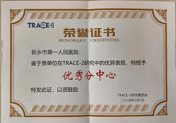 我院神经内科积极参加国家中心牵头运行的脑血管病重点项目,并作为国家重大科研课题——“TRACE-2”研究分中心,获得优秀分中心荣誉。