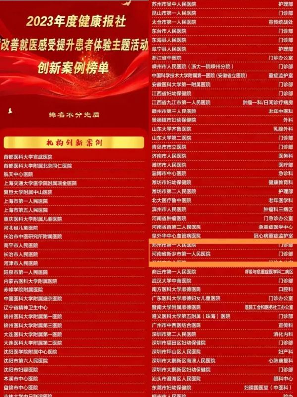 评选揭榜!我院作为新乡唯一荣获2023年度健康报社 “改善就医感受 提升患者体验主题活动”科室创新案例