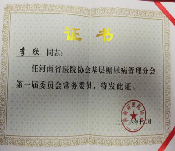 喜讯!我院邱伟、李欣当选河南省医院协会基层糖尿病 管理分会第一届委员会副主任委员、常务委员