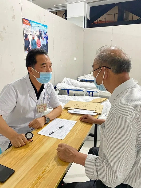 许主任驻扎到了条件简陋白内障筛查点,一张桌子,一个听诊器,一支笔,就是他所有的物品,甚至连水杯都没有带。吵杂的环境中,病人排起了长长的队,送来了一摞摞住院病人的病历,可他依然微笑且耐心的免费筛查着每一位病人。心电图单子他一张张的认真查看,然后为每个病人把脉,听诊,对待每位病人都耐心解释,并进行了健康教育,衷心希望每位患者都能够早日康复。