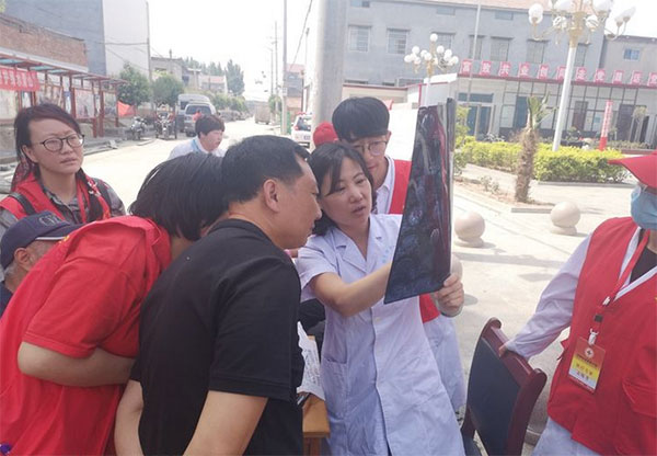 宋村的村民们,络绎不绝来到义诊现场,“谁管看脑部片子了?”“谁管看胃了?”“我腿疼能看吗?”“我血压高你们管看吗?”“能测个血糖吗?”“我心脏不好,排队做个心电图吧。”活动现场村民们就诊气氛活跃,他们纷纷针对自己出现的健康问题进行了咨询。而我院的各位专家医生弯下身板为他们进行查体,遇到年龄大的村民他们贴近耳旁为其讲解,现场虽然人员众多,但他们丝毫没有放松,耐心、细致地询问病情,讲解用药及提出治疗建议,对于当场解决不了的问题他们留下电话、名片,让村民们可以直接来院就诊,方便联系,充分展现出党员及医护人员的良好党风及医德。