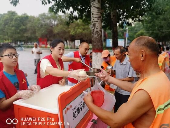 6月25日清晨,我院内科第二党支部及住培支部的党员义工,在刘丽娇书记的带领下,来到了我市烈士陵园早餐发放点,为环卫工人免费发放早餐,希望他们在辛劳了一个早晨后能吃上一顿热乎乎的早餐,让他们感受到尊重和关爱,度过一个温暖的清晨。